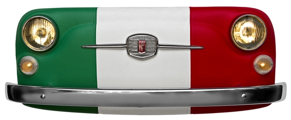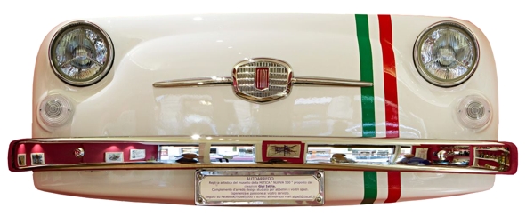 Autofront Muurdecoratie van de beroemde Fiat Nuova 500.